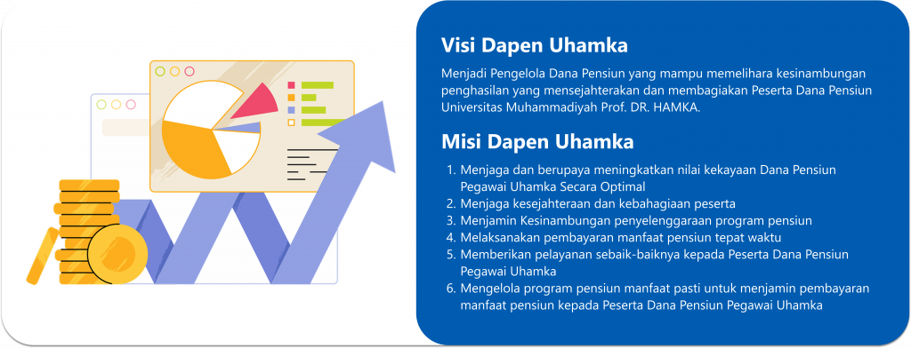 Maksud pembentukan Dapen UHAMKA adalah untuk menyelenggarakan Program Pensiun Manfaat Pasti (PPMP) dengan tujuan memberikan kesinambungan penghasilan dihari tua bagi peserta dan kesejahteraan bagi Janda/Duda serta Anak. Manfaat Pensiun yang diterima oleh pegawai UHAMKA berupa Manfaat Pensiun bulanan yang akan diterima oleh si pegawai ketika pension sampai yang bersangkutan meninggal dunia dan dilanjutkan ke istri dan anak pensiunan.